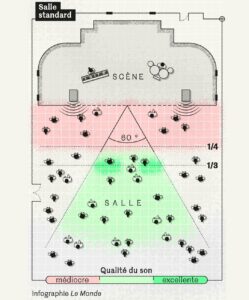 En somme, pour profiter au mieux d’un concert, mieux vaut choisir une position un peu en retrait, centrée par rapport à la scène, et dégagée au-dessus de la tête : l’équilibre sonore y est généralement bien meilleur, et l’expérience musicale n’en sera que plus agréable.